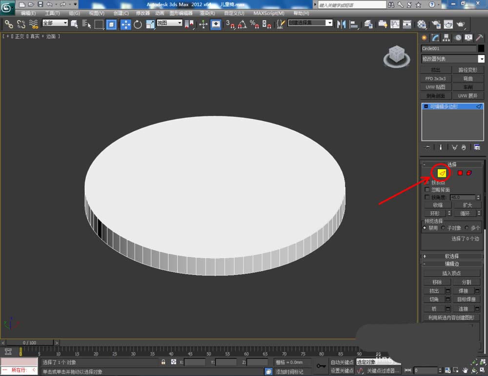3、選中模型,點擊鼠標(biāo)右鍵-【轉(zhuǎn)換為】-【轉(zhuǎn)化為可編輯多邊形】。點擊【邊】圖標(biāo),選中圖示模型上的邊后,點擊【切角】,按圖示設(shè)置好切角的各個參數(shù)(如圖所示);