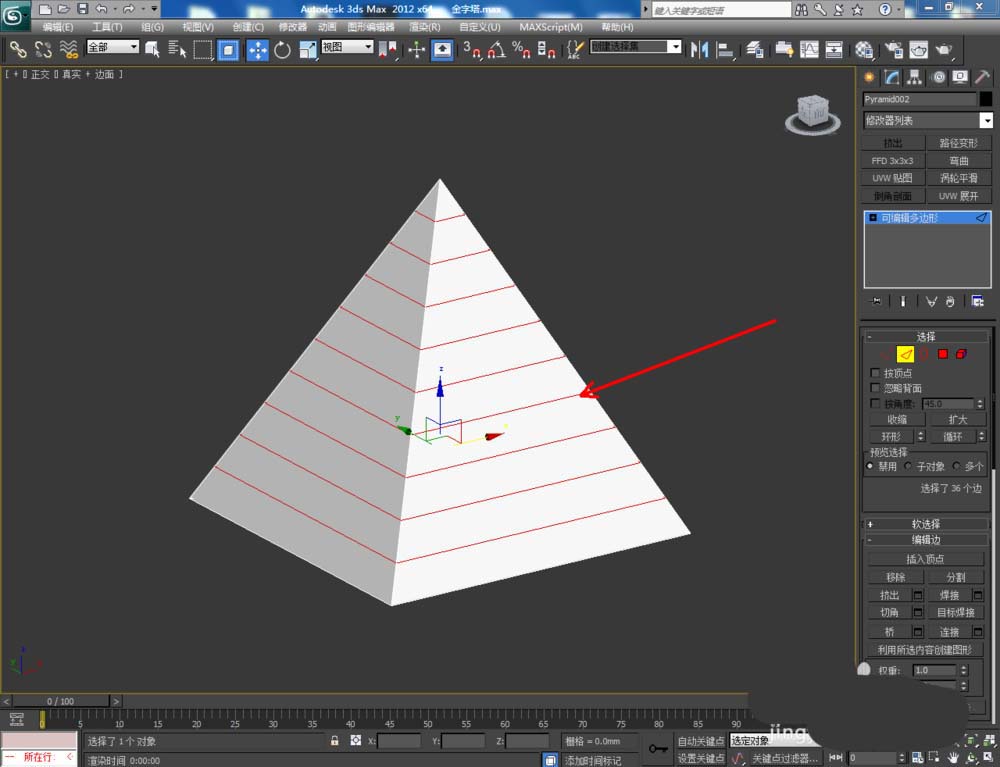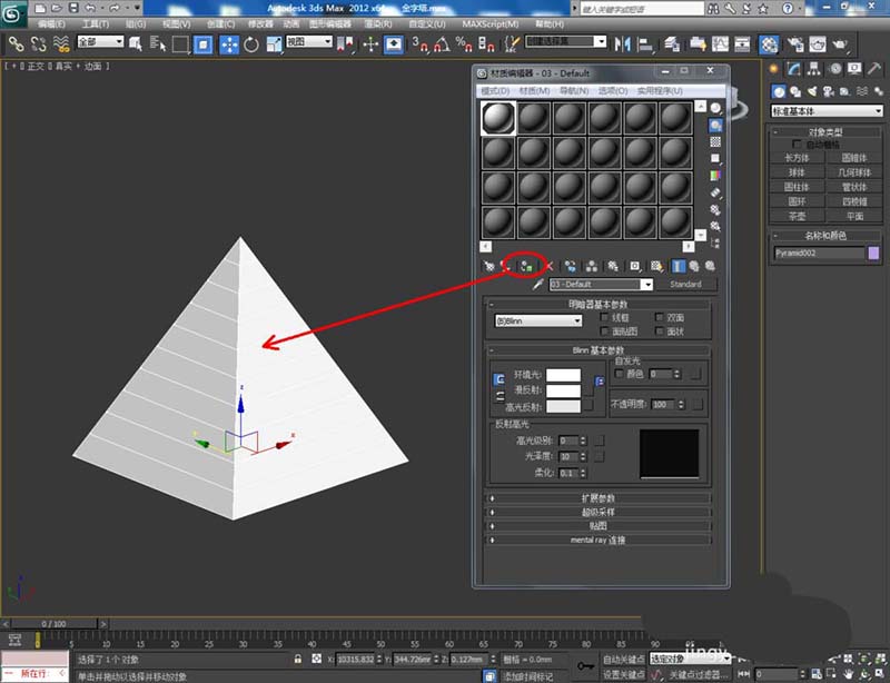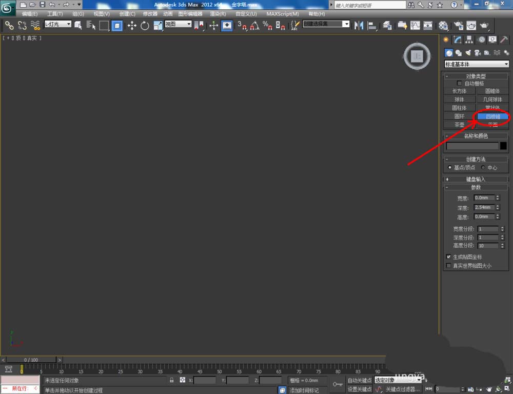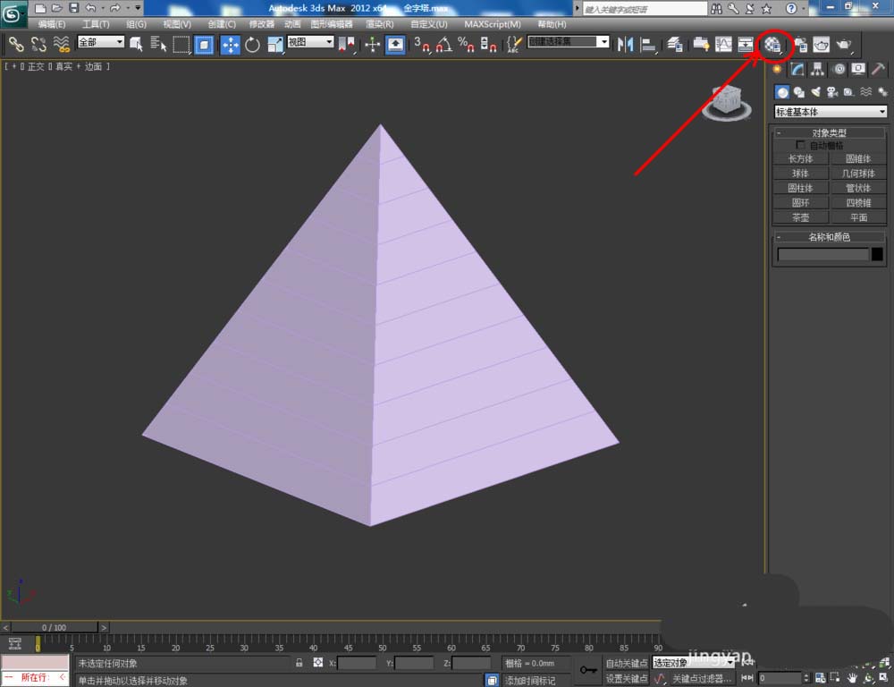 1、打開3Dmax2012軟件,點(diǎn)擊【創(chuàng)建】-【幾何體】-【標(biāo)準(zhǔn)基本體】-【四棱錐】,在作圖區(qū)域繪制一個(gè)四棱錐模型并按圖示設(shè)置好模型的各個(gè)參數(shù);