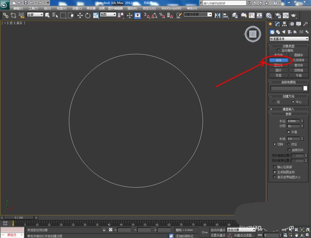 1、打開(kāi)3Dmax2012軟件,點(diǎn)擊【創(chuàng)建】-【圖形】-【圓】,繪制出一個(gè)圓形圖案,半徑設(shè)為:40mm作為手串的系線。點(diǎn)擊【對(duì)象顏色】將圖案的對(duì)象顏色設(shè)置為:白色;