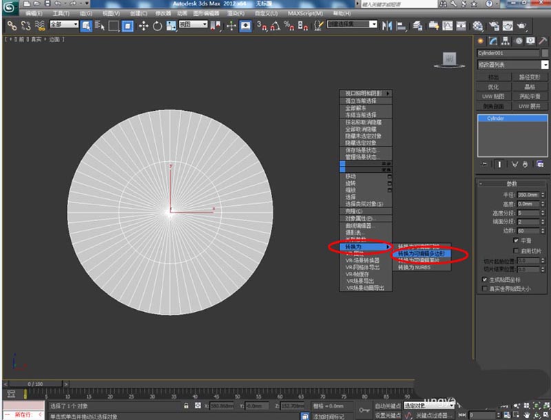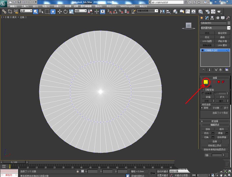 2、選中模型,點擊鼠標右鍵-【轉(zhuǎn)換為】-【轉(zhuǎn)換為可編輯多邊形】。點擊【頂點】圖標,選中圖示模型上的點進行縮放操作(如圖所示);