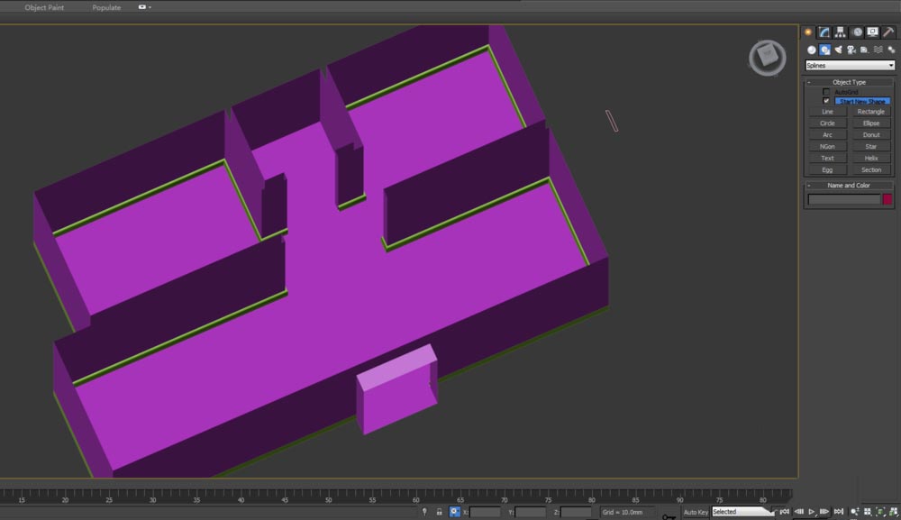 1、打開3d max軟件,先導(dǎo)入或者繪制出一個戶型模型;如下: