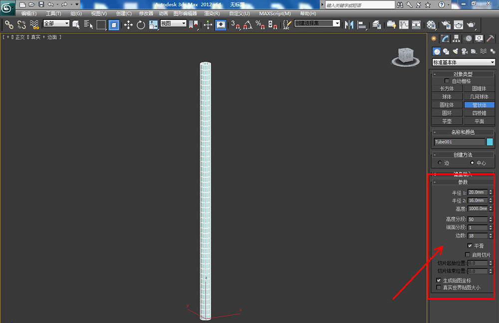 2、點擊【創(chuàng)建】-【幾何體】-【管狀體】,設(shè)置好圖示管狀體參數(shù)后,繪制出一個管狀體模型;