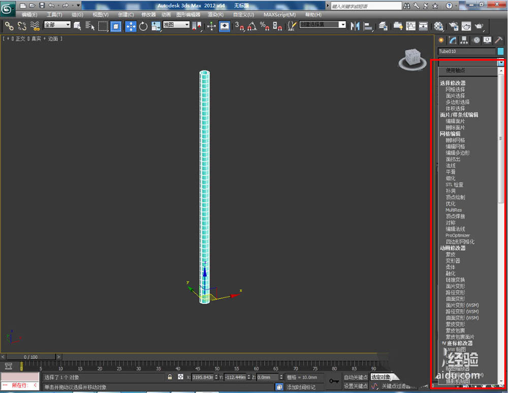 3、選中模型,點擊【修改】-【修改器列表】,彈出修改器列表選項欄;