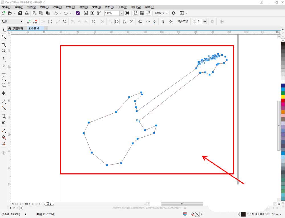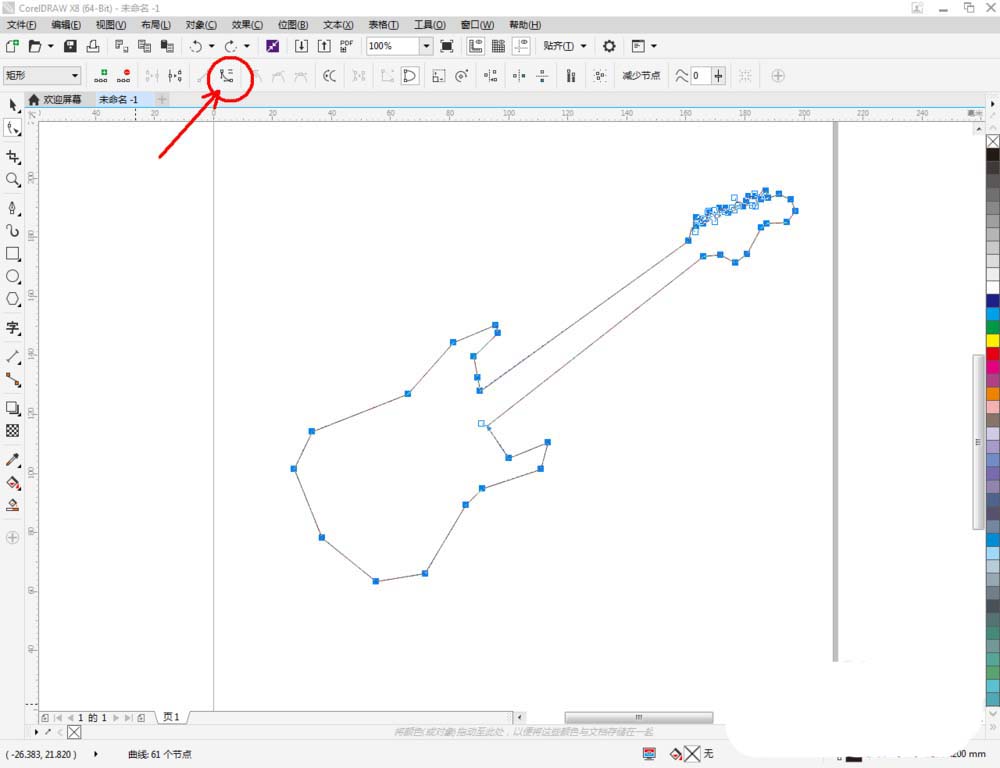 3、選中琴體圖案,點(diǎn)擊【形狀工具】,選中圖案上的所有點(diǎn),點(diǎn)擊【轉(zhuǎn)換為曲線】將圖案轉(zhuǎn)曲后,按圖示調(diào)整控制點(diǎn),完成整個(gè)琴體輪廓圖案的繪制(如圖所示);