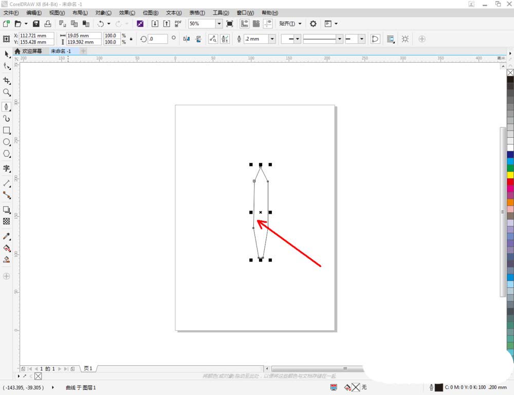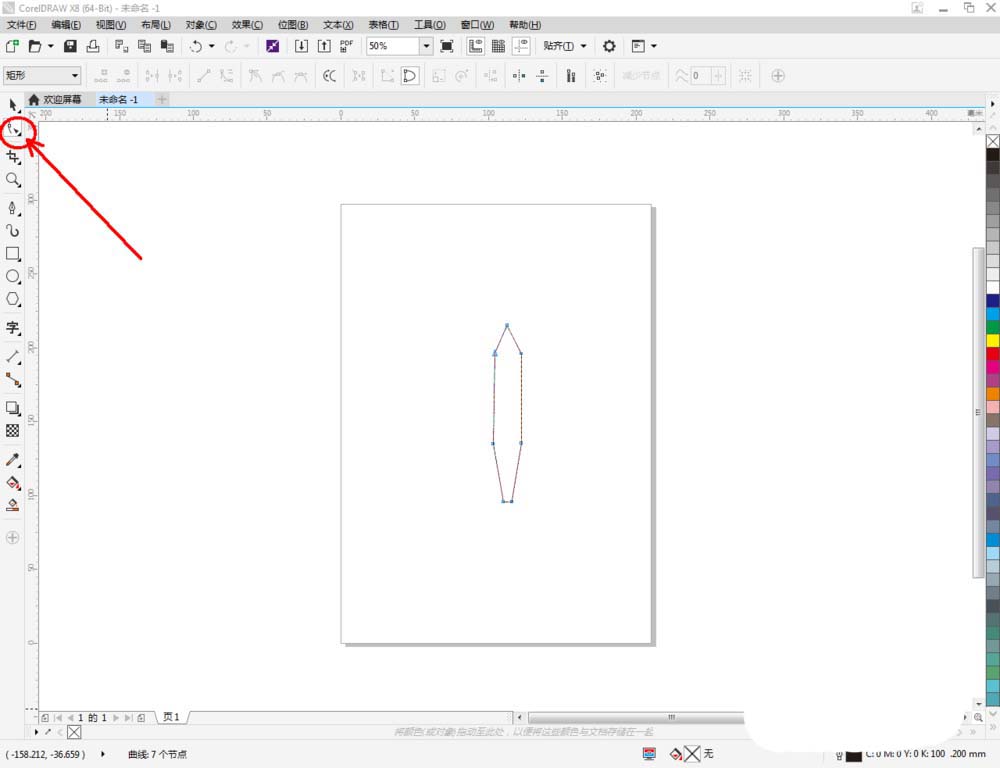 2、點(diǎn)擊【鋼筆工具】,按圖示繪制一個(gè)多邊圖案。點(diǎn)擊【形狀工具】,選中圖案上的所有點(diǎn),點(diǎn)擊【轉(zhuǎn)換為曲線】將圖案轉(zhuǎn)曲后,按圖示調(diào)整控制點(diǎn),完成整個(gè)機(jī)身圖案的繪制(如圖所示);