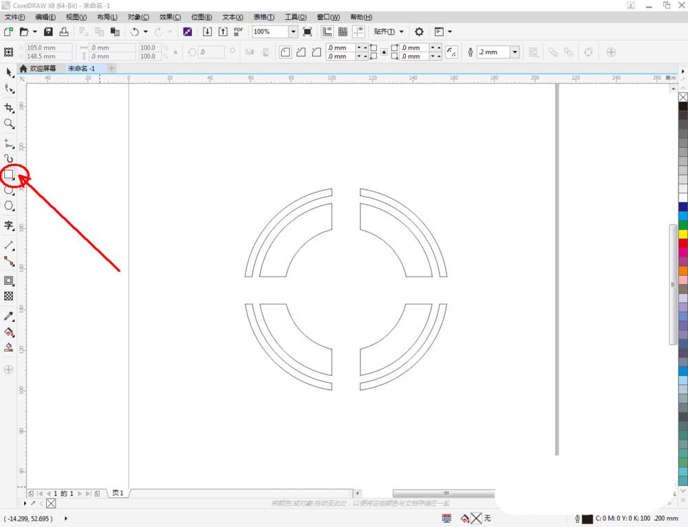 5、點擊【矩形圖案】,按圖示繪制一個橫向矩形圖案和一個縱向矩形圖案。完成后選中所有圖案,點擊【移除前面對象】將前面部分的圖案移除(如圖所示);