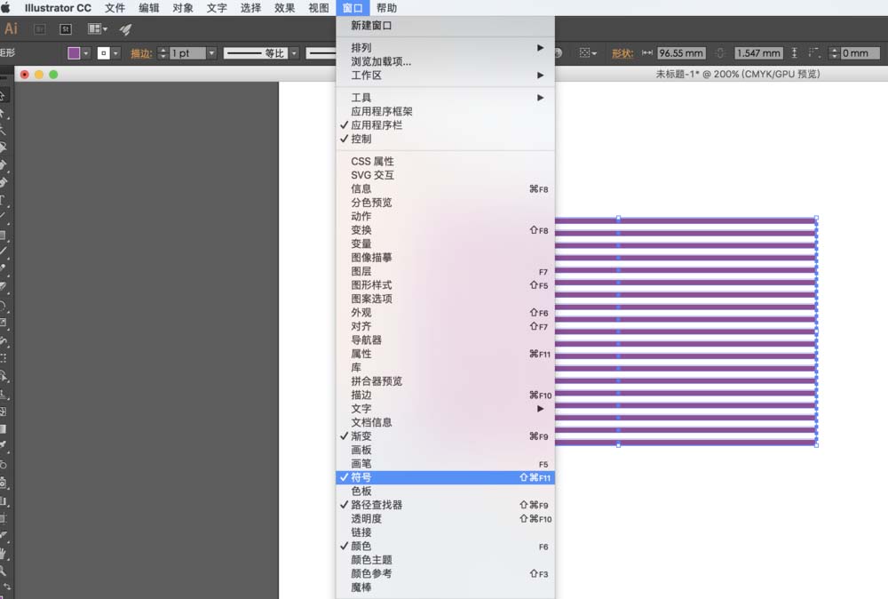 4、在AI菜單欄上找到窗口菜單,單擊,在下拉所有窗口選項中找到“符號”,這樣就可以在界面中調(diào)出符號面板。