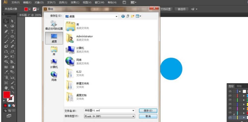 5、執(zhí)行文件-導出命令,選擇保存類型為:Flash(*SWF)格式。