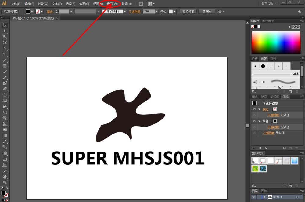 4、點(diǎn)擊【窗口】,勾選【圖形樣式】將圖形樣式工具欄調(diào)出并移動(dòng)調(diào)整好圖形樣式工具欄的位置。點(diǎn)擊【圖形樣式庫(kù)菜單】-【照亮樣式】,將照亮樣式工具欄調(diào)出(如圖所示);