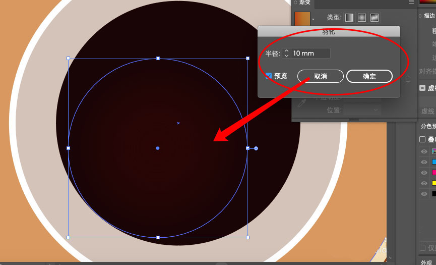 5、給杯子中間的液體高光部分做羽化效果,讓邊緣過渡變得自然。