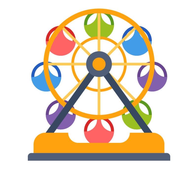 2、使用綠色與暗綠色搭配填充摩天輪的圓形小房間,淺綠色在上方,暗綠色在下方。