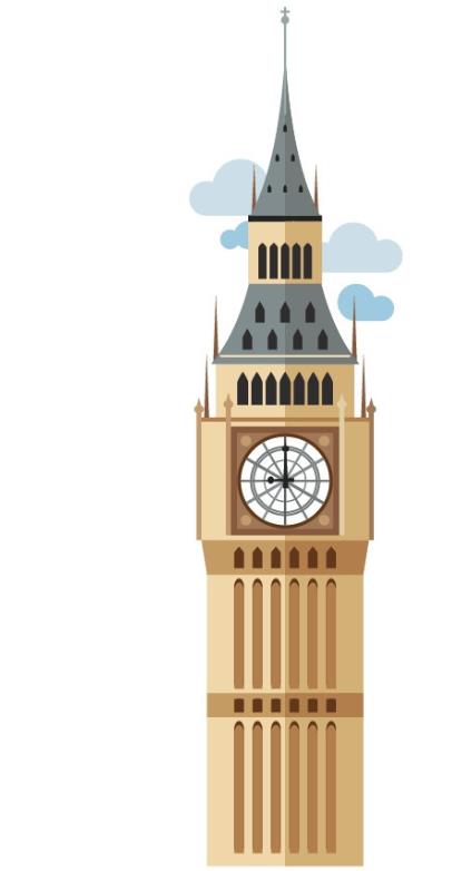 1、使用鋼筆畫出大鐘樓的尖塔頂部與周圍的云朵,再繪制出大鐘樓中間的表盤元素,繼續(xù)繪制出大鐘樓矩形雙層結構的細節(jié),使用矩形工具繪制出大鐘樓正面的圓角矩形孔洞路徑。