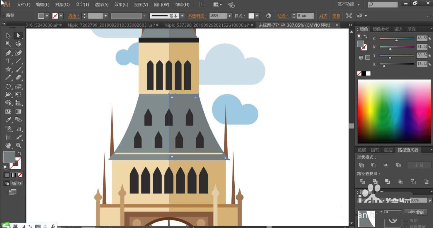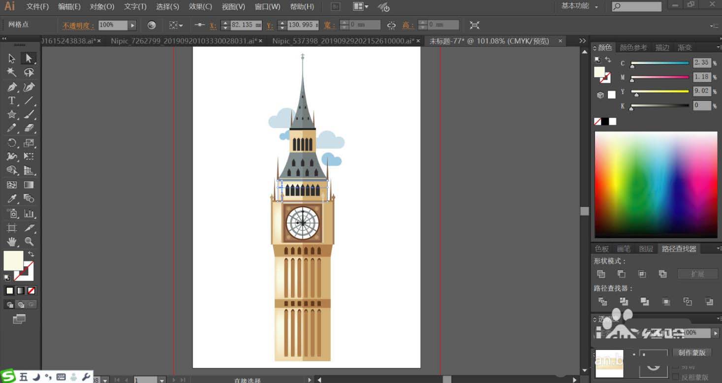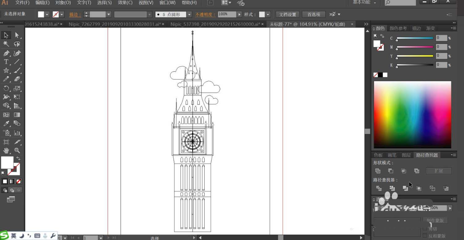 ai怎么手繪鐘塔樓? ai大鐘樓矢量圖的畫法