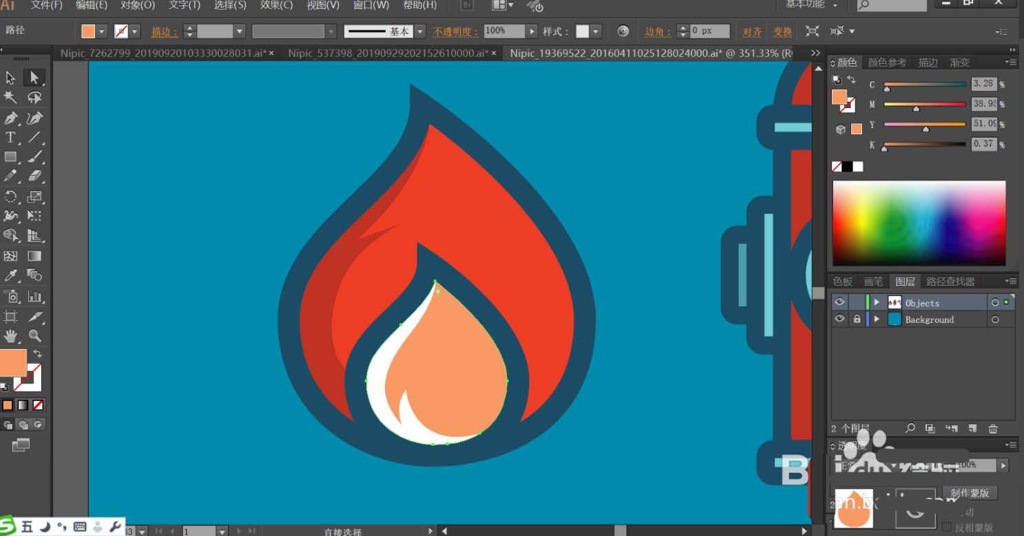 3、火苗的內部用紅灰色與白色填充,內部的火苗路徑可以直接復制外部火苗并縮小。