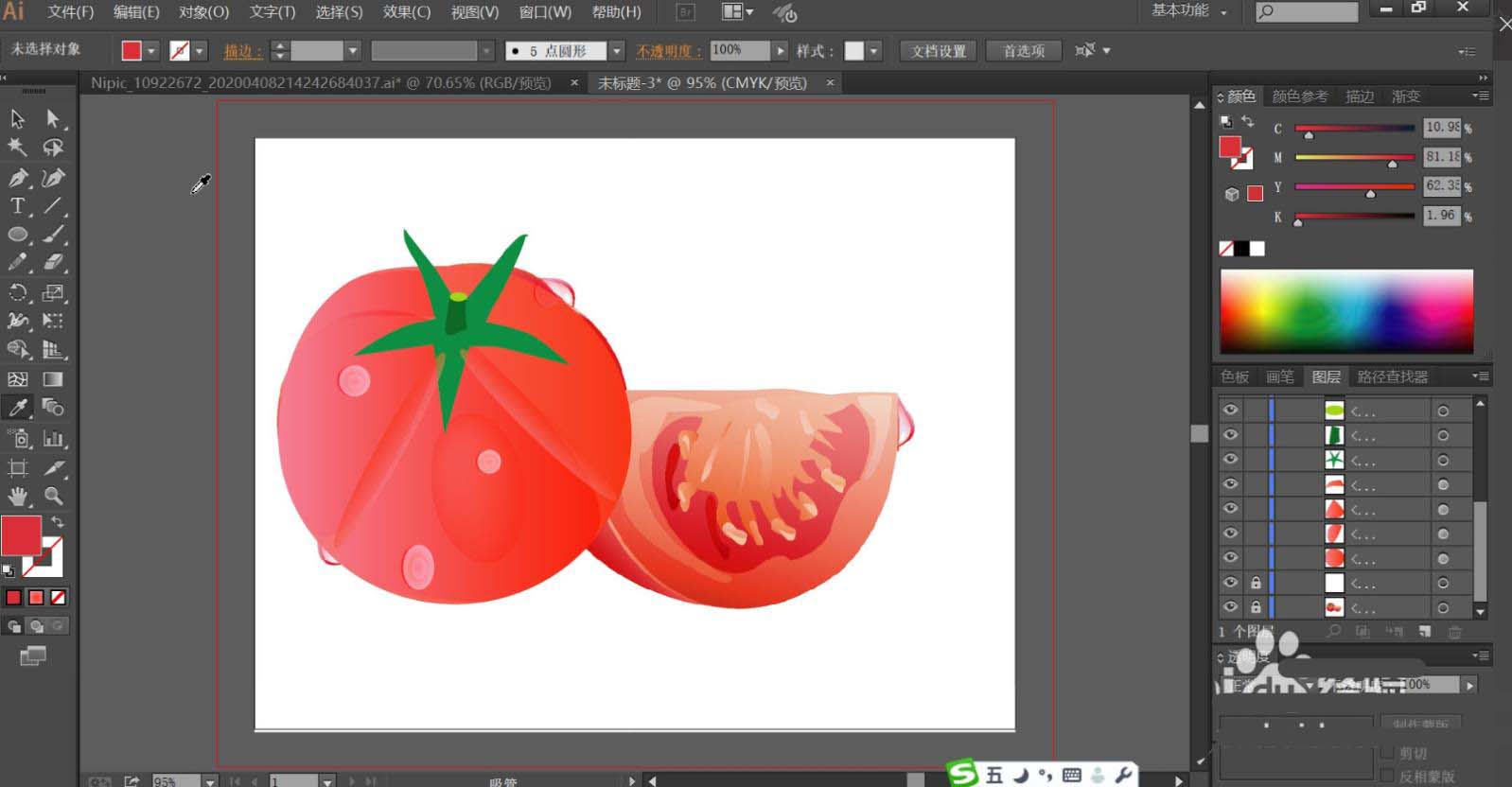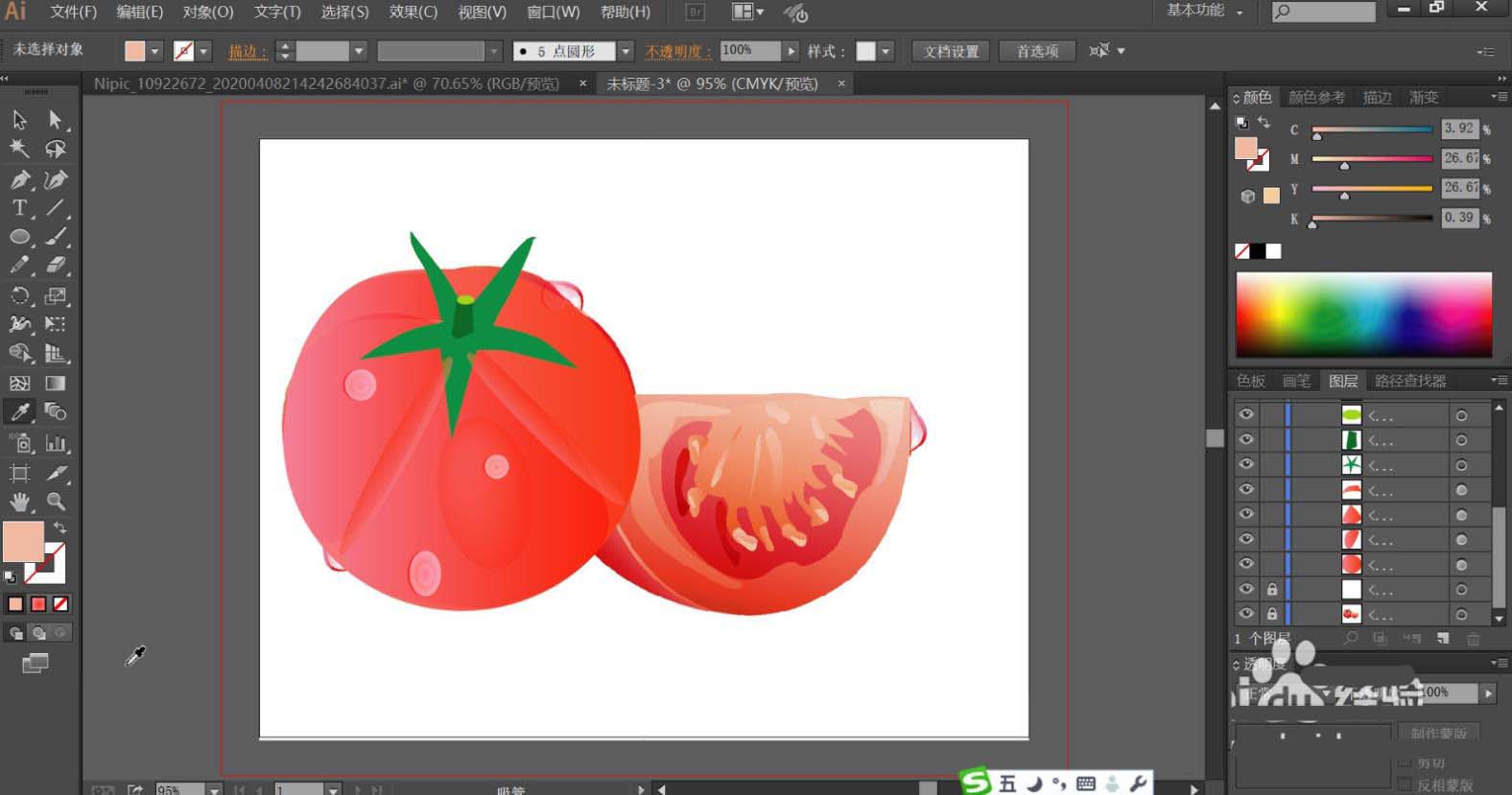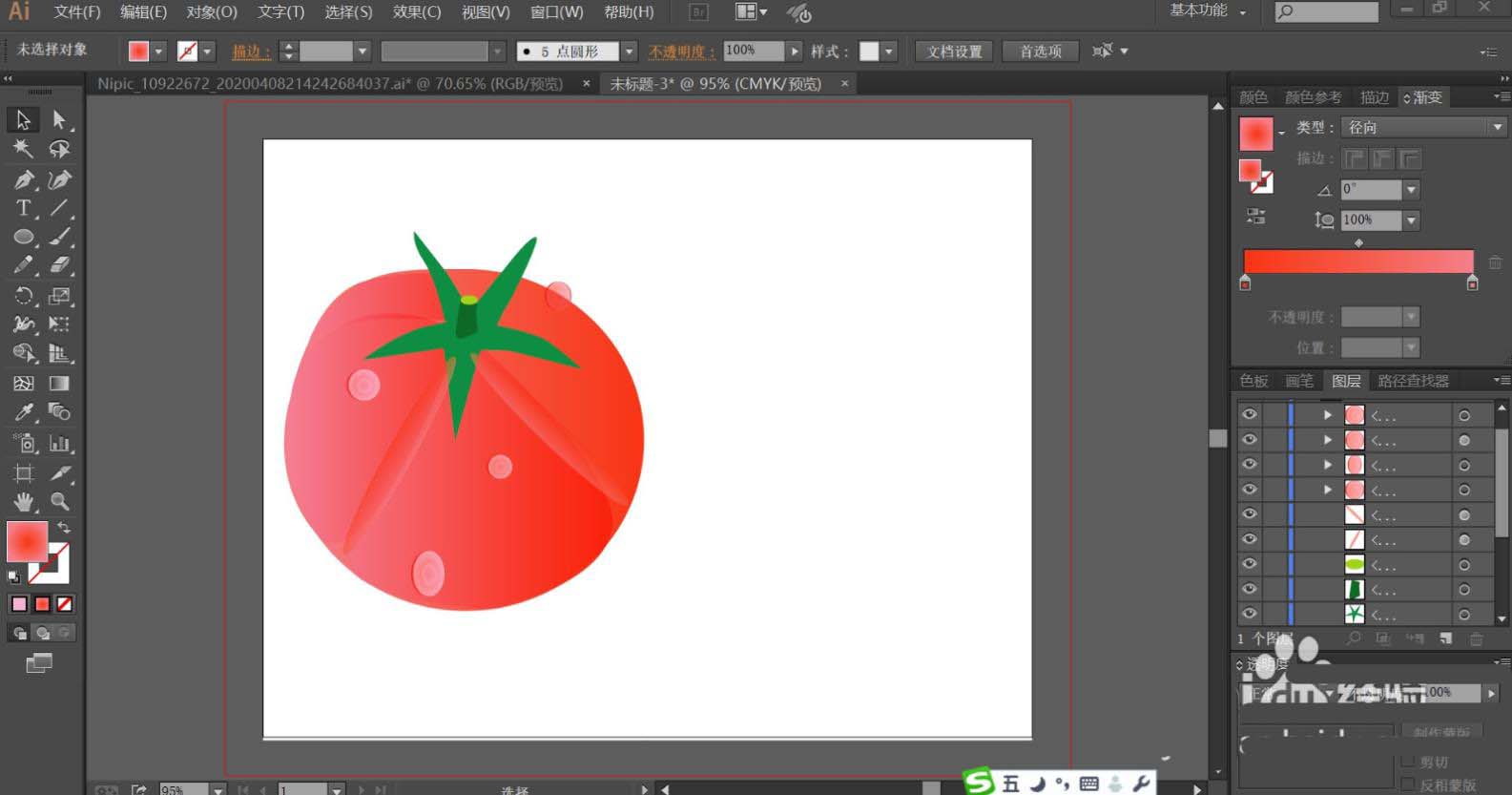 ai怎么手繪水彩畫效果的紅番茄素材? ai番茄的畫法