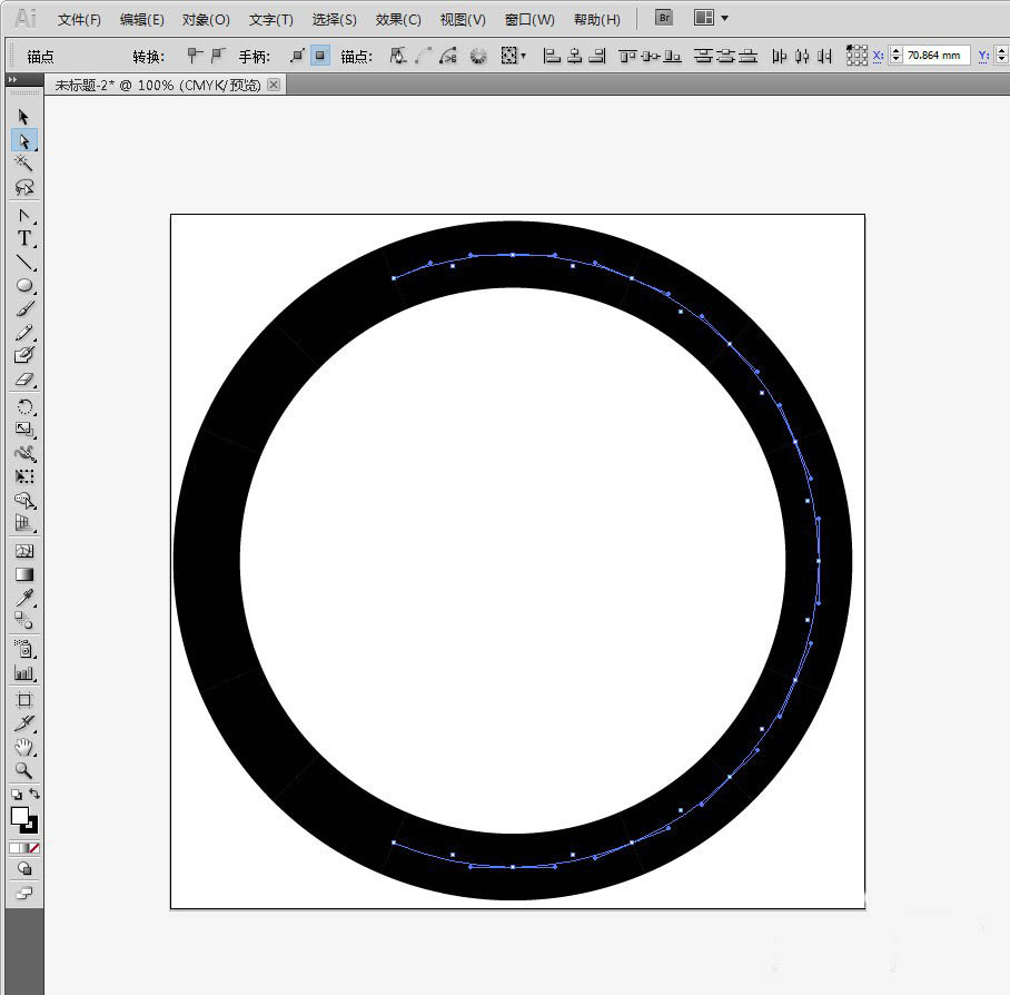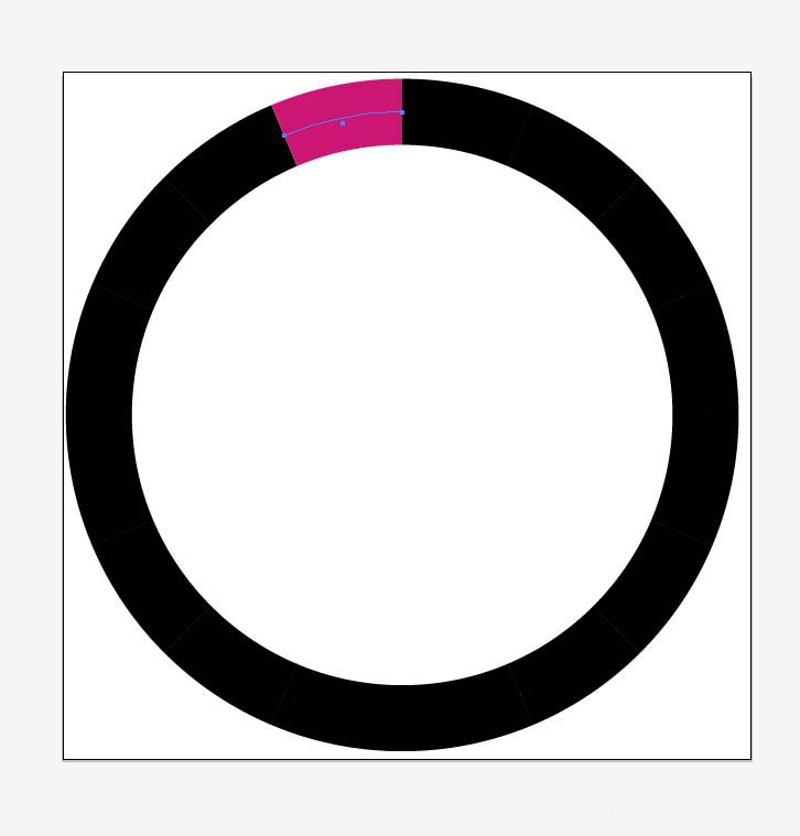 5、用同樣的方法,剪掉右半部分的路徑。剪切路徑后,將整個(gè)正圓平均分成了16份,如圖。