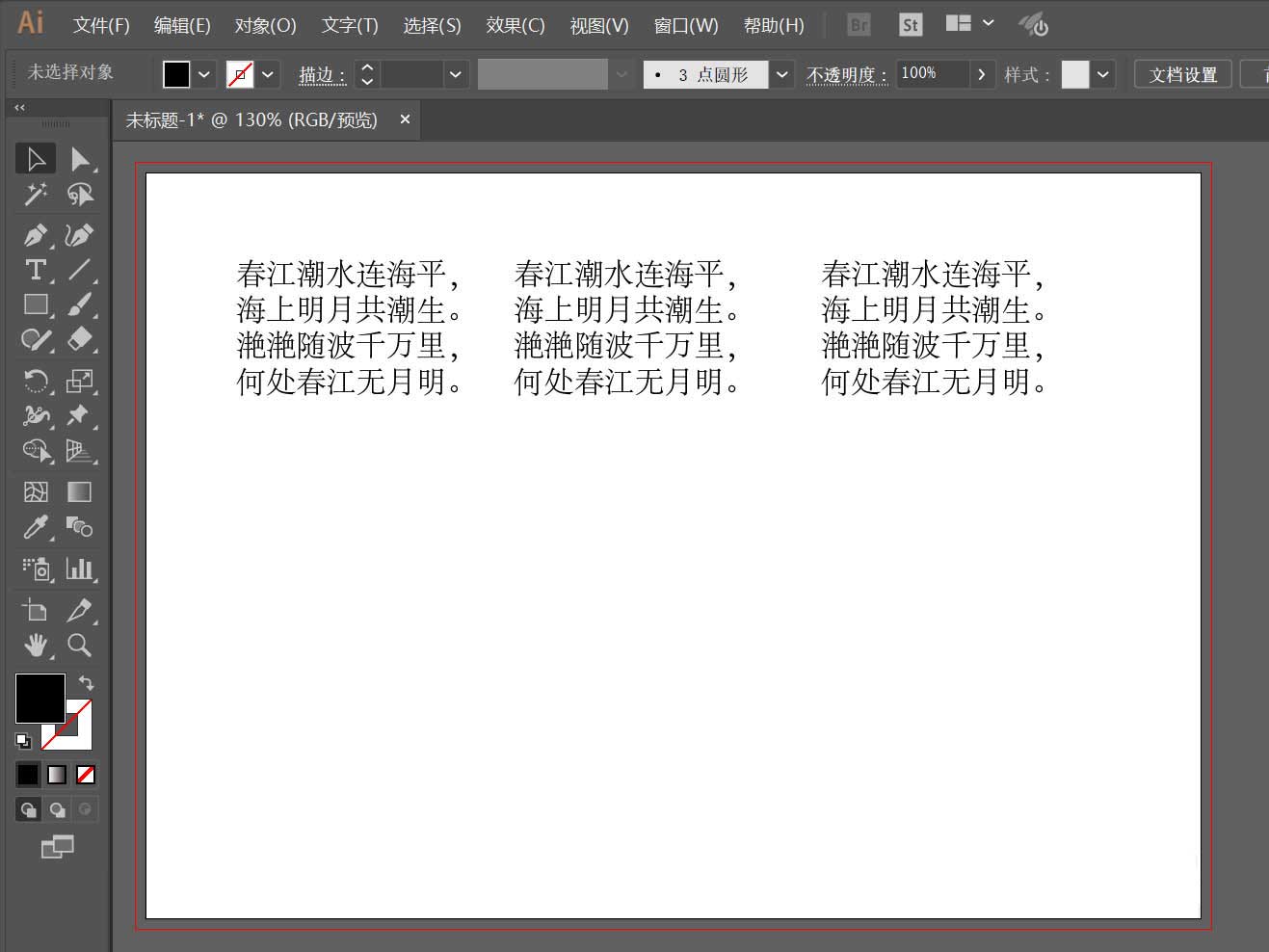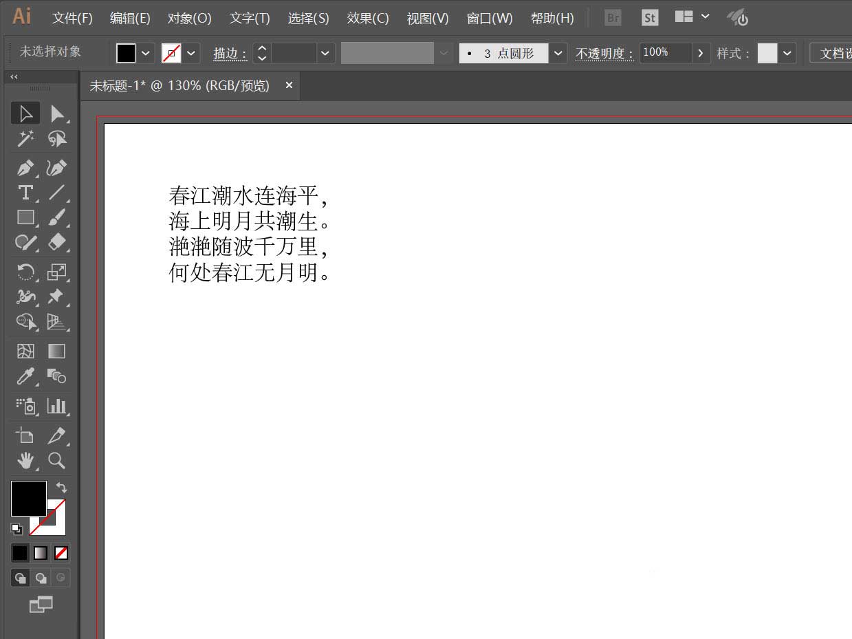 1、雙擊運(yùn)行AI軟件,進(jìn)入軟件的主頁面,并隨意書寫一段文字;