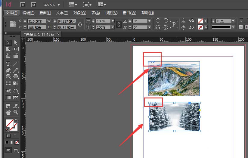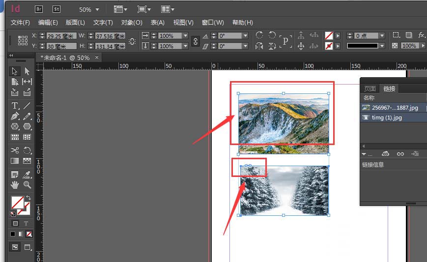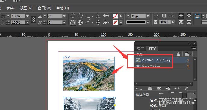 2、選擇圖片,劃定選擇范圍將圖片置入,如圖,圖片置入后,在圖片上方可以看到鏈接符,說明圖片都是鏈接進來的
