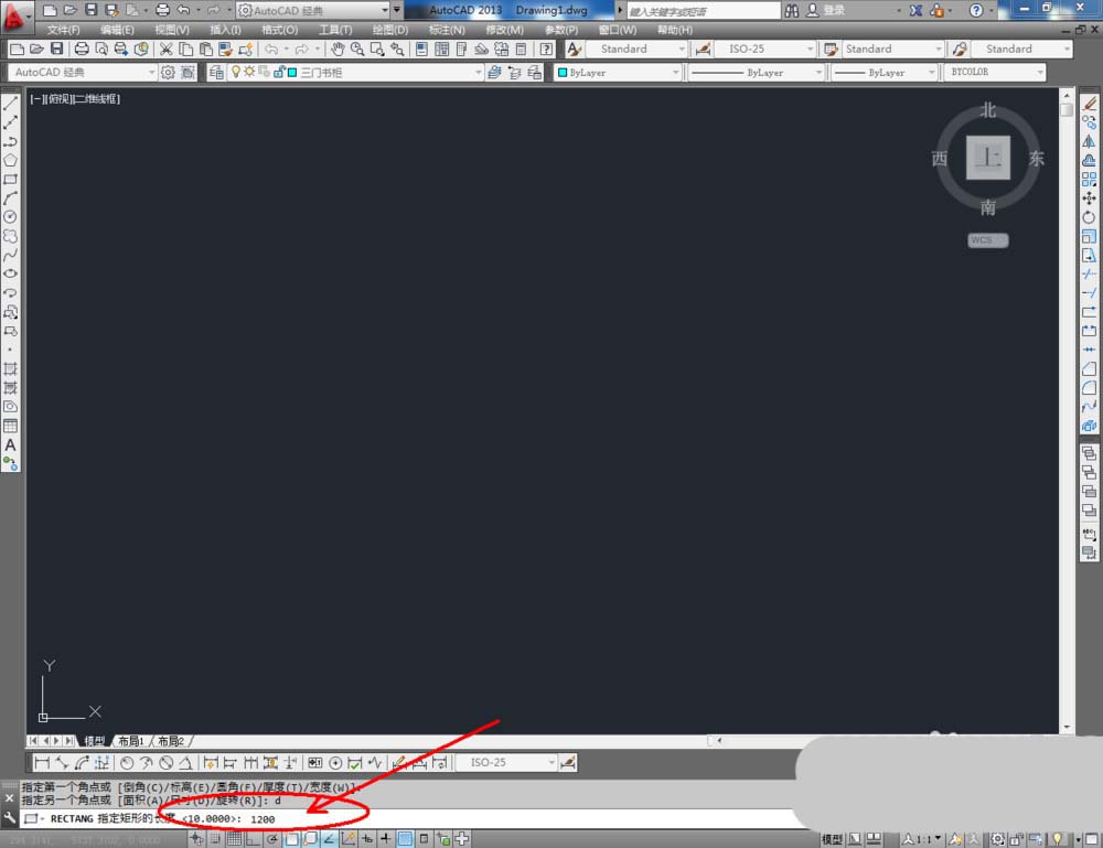 2、點擊【矩形工具】,按圖示在命令欄輸入:d并按下空格鍵,輸入長度值:1200并按下空格鍵,繼續(xù)輸入寬度數(shù)值:1950并按下空格鍵,完成矩形圖案的繪制。選中圖案,點擊右邊工具欄中的【分解工具】,將圖案炸開(如圖所示);