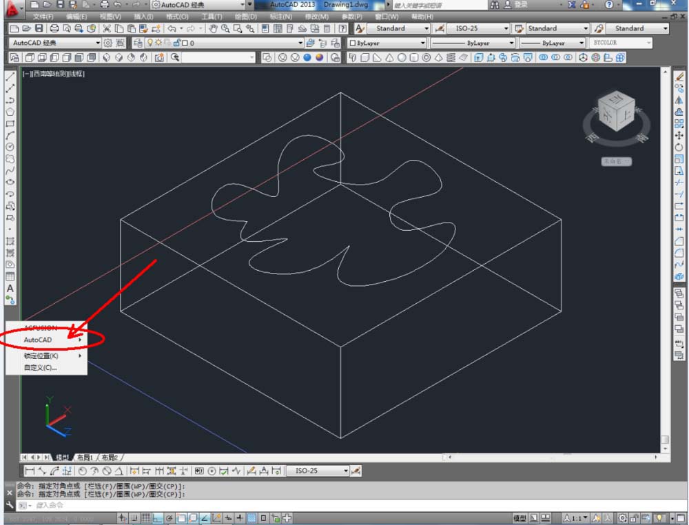 4、點擊鼠標(biāo)右鍵-【AutoCAD】,勾選【實體編輯】,將實體編輯工具欄調(diào)出并調(diào)整好實體編輯工具欄的位置(如圖所示);