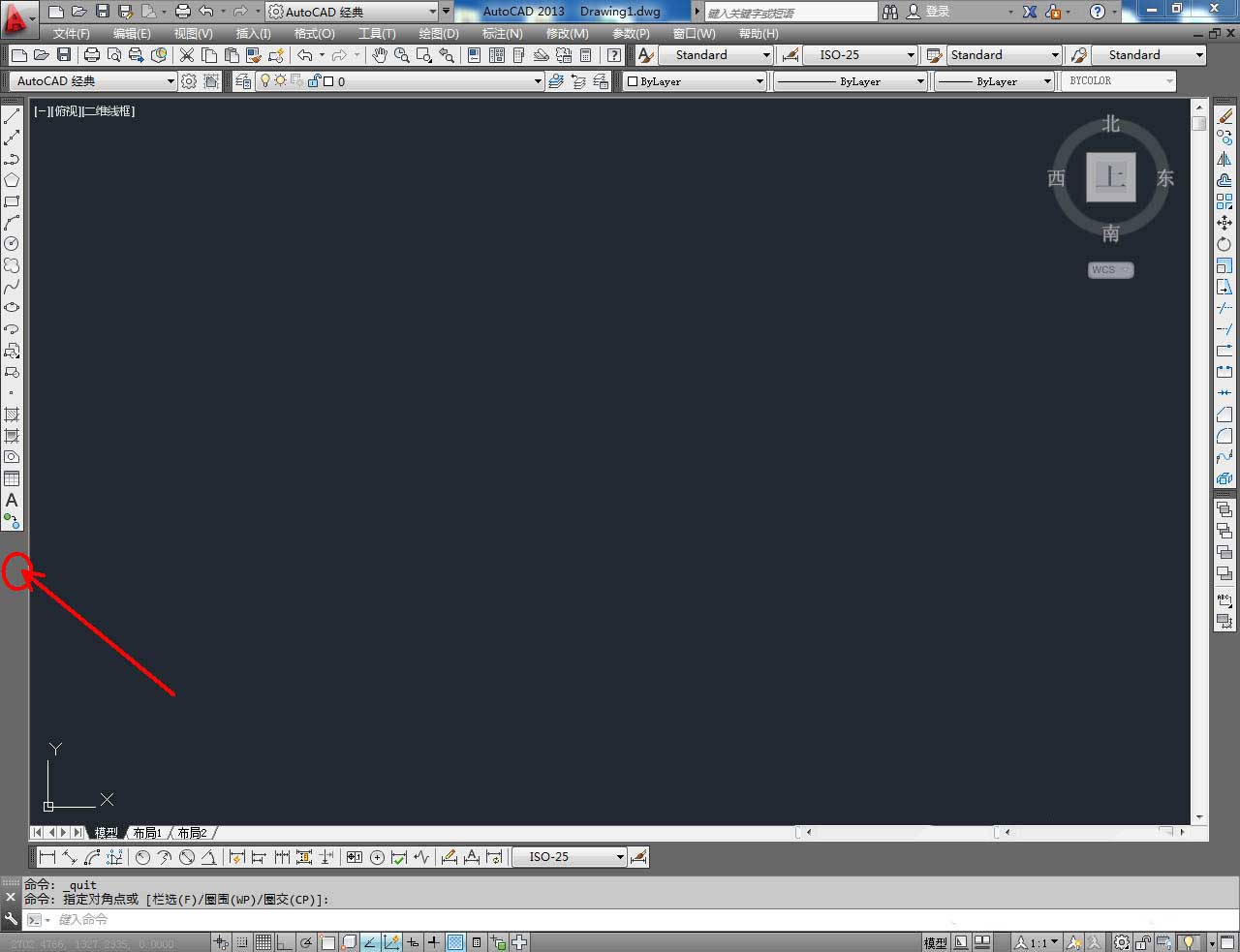 1、打開AutoCAD 2013軟件,進入軟件工作界面;