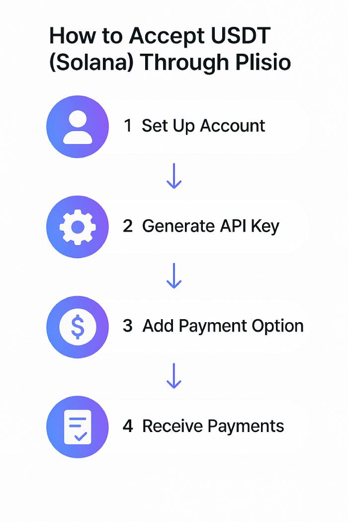 無(wú)需第三方應(yīng)用程序。一切都直接通過(guò) Plisio(您值得信賴的 Solana 支付處理器)進(jìn)行。