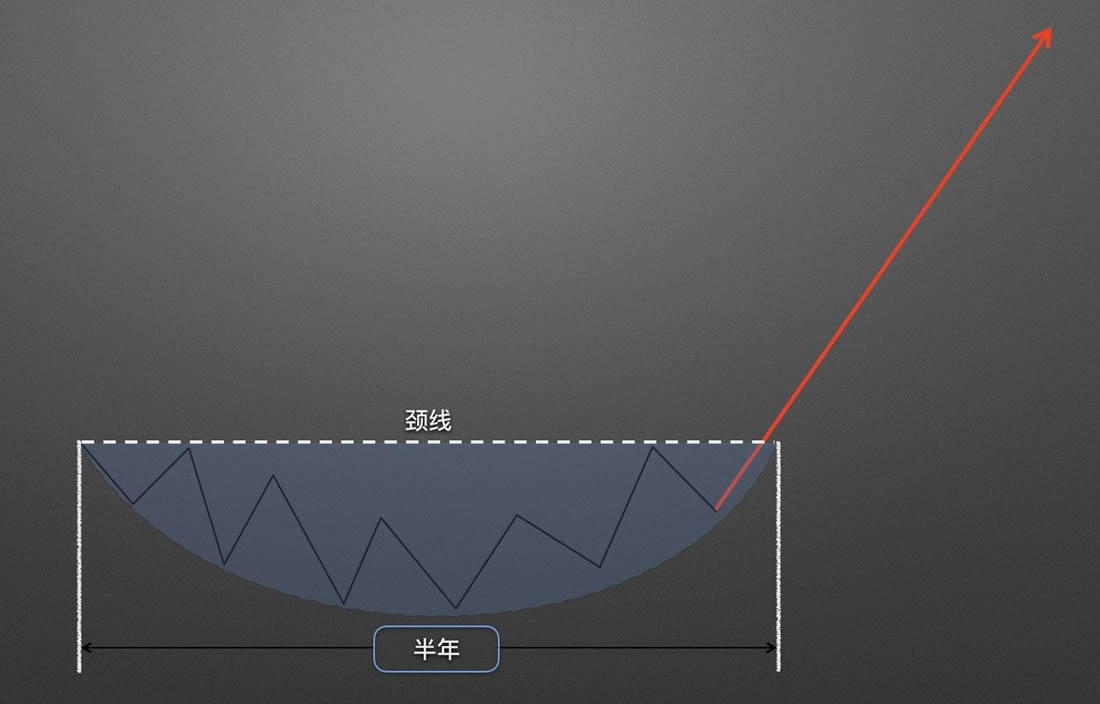 我們也可以通過(guò)圓弧底的形成周期,粗略地預(yù)測(cè)未來(lái)上漲幅度。