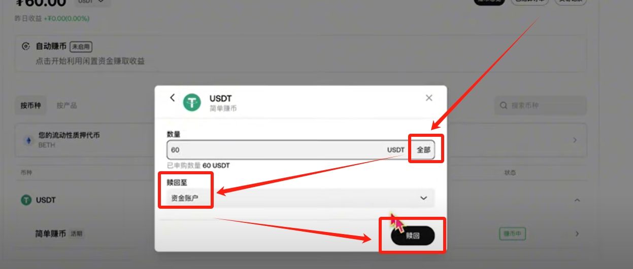 這樣的話你簡(jiǎn)單賺幣的資金就贖回來了。