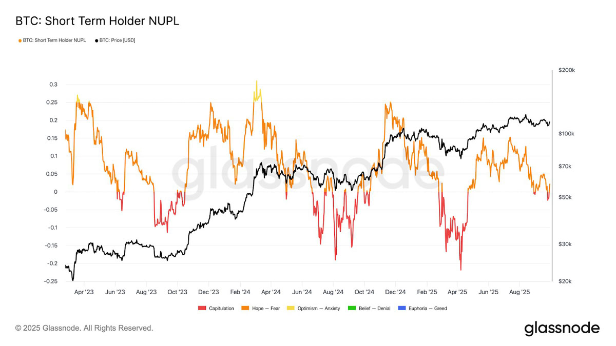 歷史上,短期持有者NUPL指標(biāo)為負(fù)時,通常與熊市或調(diào)整階段的價格底部同步。這反映了賣方力量的普遍衰竭。