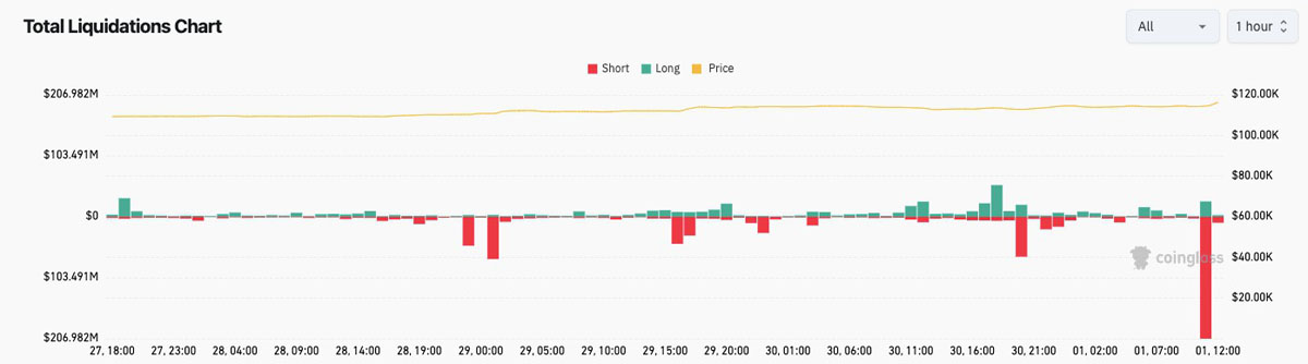 CoinGlass數(shù)據(jù)顯示,截至發(fā)稿時(shí),過去24小時(shí)內(nèi)加密貨幣空頭平倉總額達(dá)到4億美元。