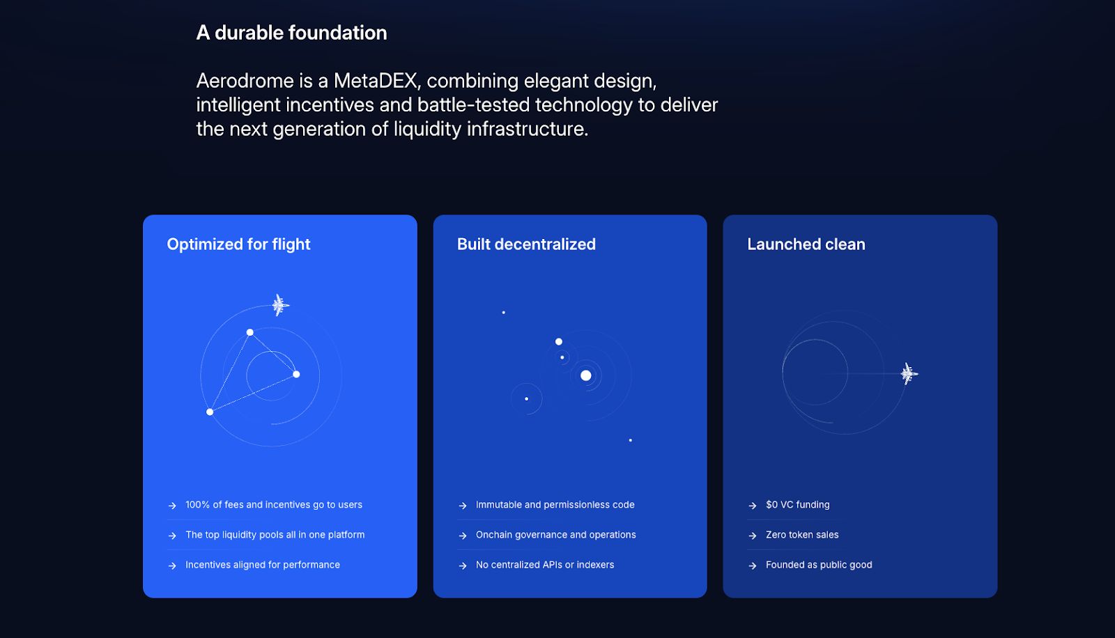 - 基礎生態(tài)系統(tǒng)路由 :項目在Aerodrome上列出交易對,以利用Base原生流動性和veAERO投票者的關注。