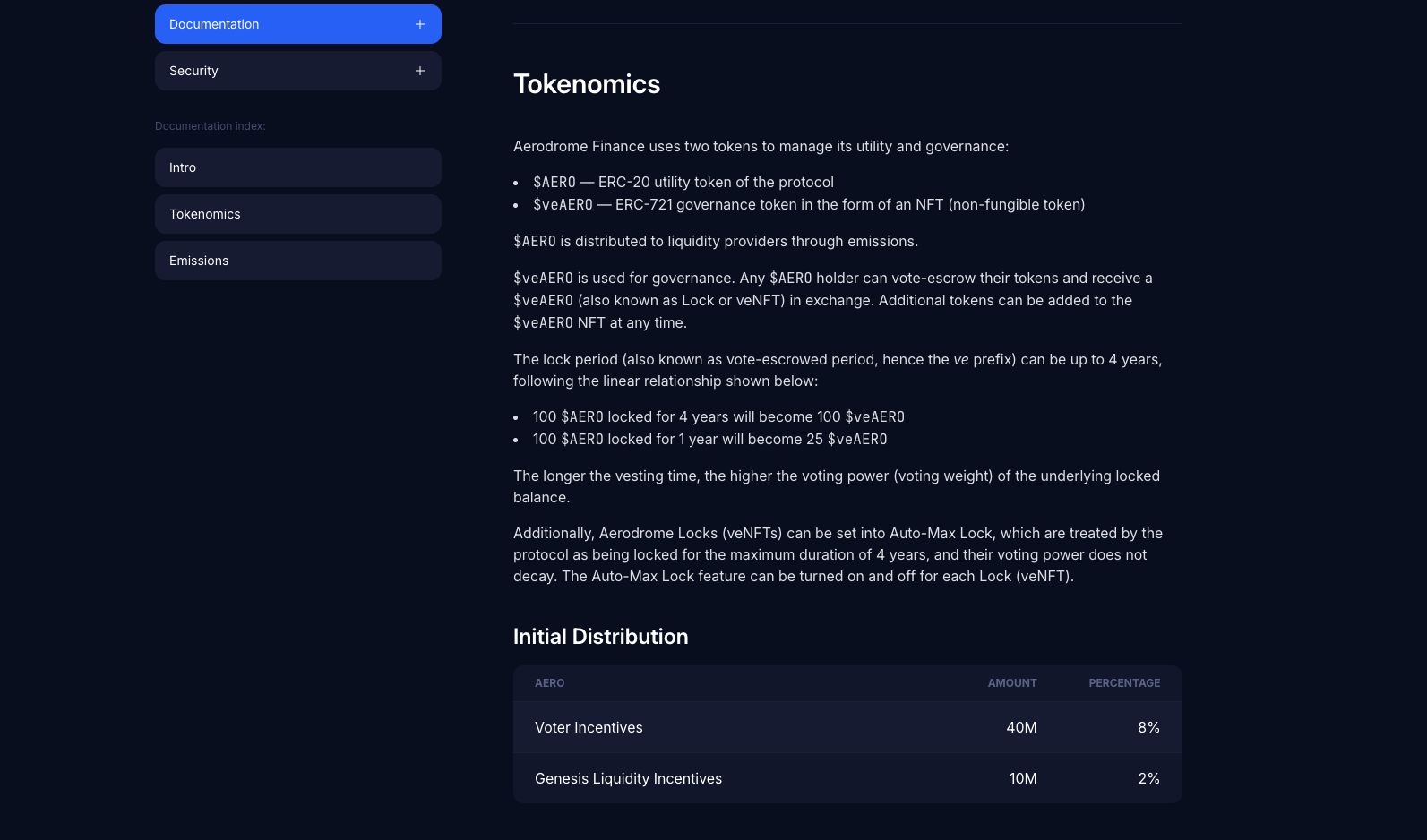 - AERO (ERC-20) : 用于激勵和發(fā)放的流動性代幣;可鎖定以鑄造veAERO。