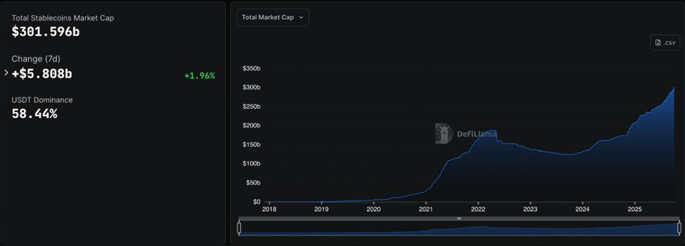 這一地區(qū)性爆發(fā)正值 全球穩(wěn)定幣總市值首次突破 3000 億美元。其中,Tether(USDT)以 1763 億美元市值占據(jù) 58% 市場份額,緊隨其后的是 Circle 的 USDC,市值 740 億美元。