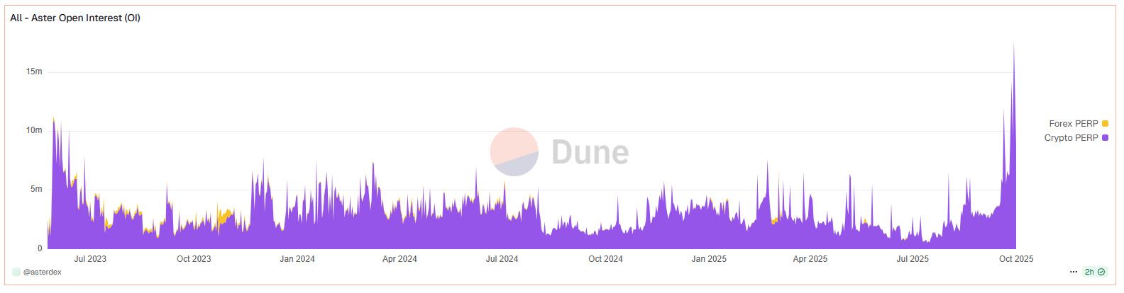 其中實力最強勁的就是BNB Chain上的Aster,不僅短時間內奪走了Hyperliquid長期占據的去中心化衍生品市場份額第一的寶座,還在日交易量等數(shù)據方面領先了10倍左右。