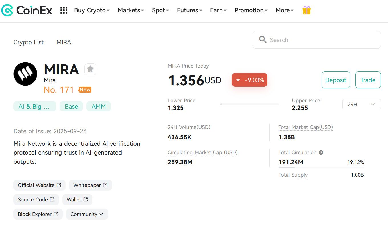 在多項(xiàng)公告發(fā)布后,代幣價(jià)格在單日內(nèi)飆升近 20%,顯示出強(qiáng)烈的社區(qū)興趣。如果你在交易,它現(xiàn)在已在 CoinEx 上線,這引發(fā)了更多交易量和討論。這些舉措突顯了 Mira 如何將自己定位于 AI 和區(qū)塊鏈的交叉點(diǎn),尤其是在 AI 可靠性成為科技圈熱門話題的當(dāng)下。