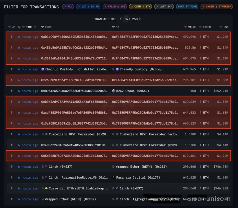 2024 年 PlusToken 關(guān)聯(lián)地址的 ETH 轉(zhuǎn)移 - Arkham