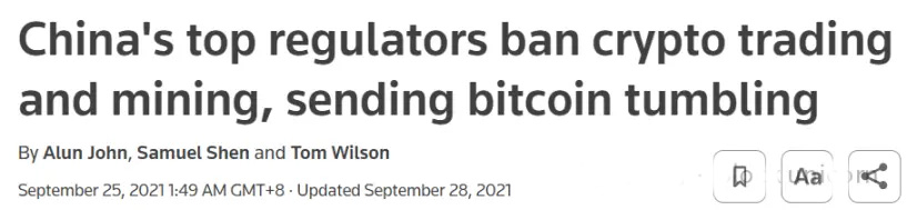 中國大陸禁止加密貨幣交易和挖礦 - 路透社