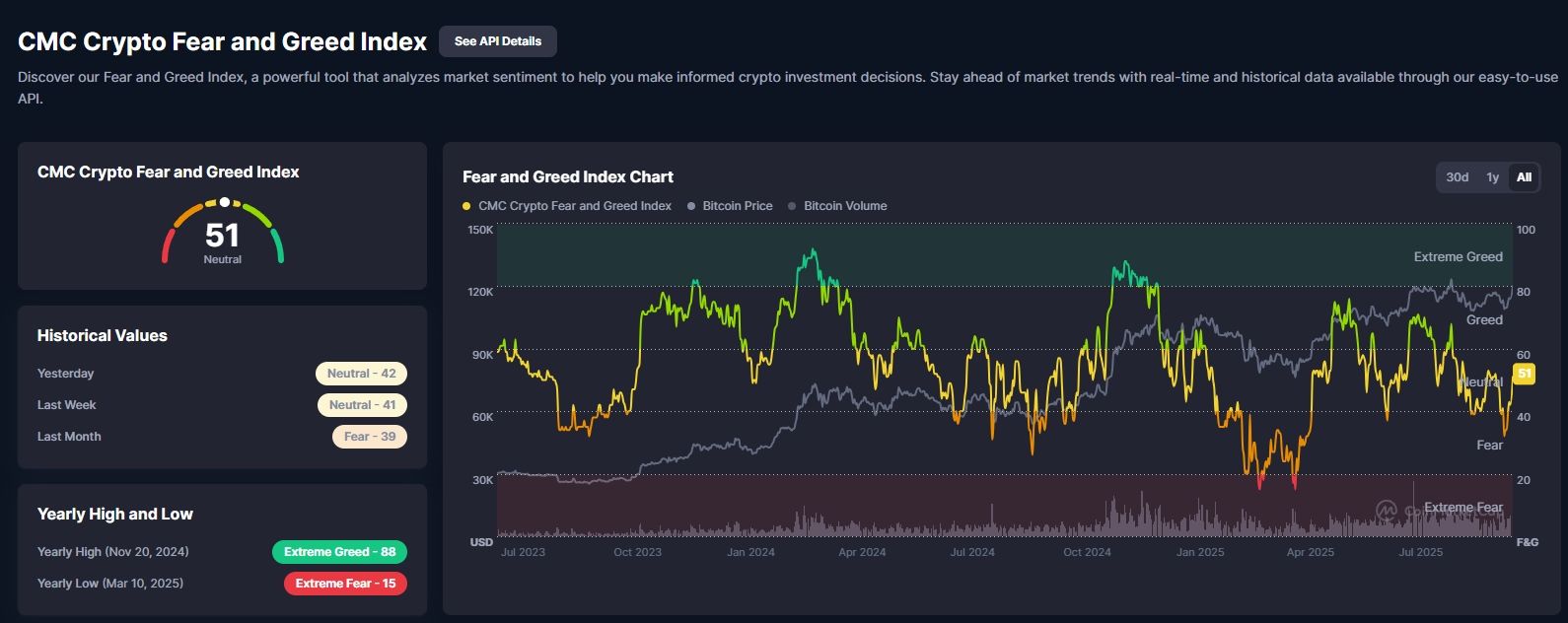 CMC 指數(shù)的推出則是一個重要發(fā)展,它解決了比特幣偏向的問題。加密市場已經(jīng)大幅多元化,以太坊、Solana 等鏈都創(chuàng)建了完整的生態(tài)系統(tǒng)。僅追蹤比特幣的指數(shù)會忽略市場的重要部分。CMC 采取更廣泛的方式,為交易者提供更全面的信息,并將數(shù)據(jù)通過 API 對外開放,讓開發(fā)者能夠基于即時情緒數(shù)據(jù)打造工具和應(yīng)用。