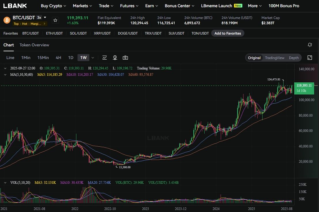 圖片來源:BTC 價格圖表(周),LBank