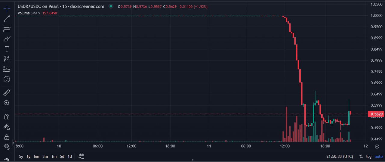 2023 年 10 月,由代幣化房地產(chǎn)和 DAI 支持的穩(wěn)定幣 USDR 在大規(guī)模贖回耗盡其 DAI 緩沖后,跌至約 0.51 美元。剩余的抵押品,主要是非流動性房地產(chǎn)代幣,無法足夠快地出售以兌現(xiàn)提款,導致價值被困在鏈上。盡管帳面上超額抵押,但由于資產(chǎn)流動性與贖回速度不匹配,掛鉤崩潰。該案例凸顯了「有支持」并不總是意味著「有流動性」,與真實世界資產(chǎn)掛鉤的穩(wěn)定幣在贖回壓力下仍然可能失敗。