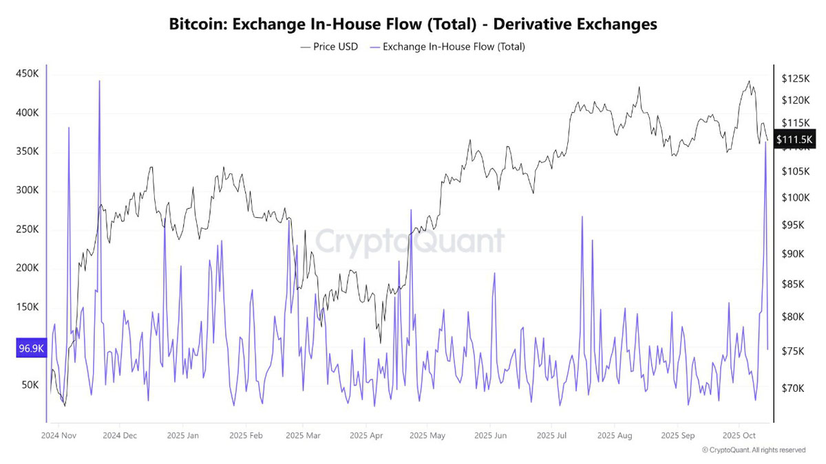 比特幣交易所內(nèi)部流動(dòng)。來(lái)源:CryptoQuant