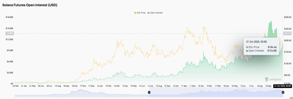 與此同時(shí),索拉納期貨未平倉合約在10月31日飆升至106.3億美元,表明投機(jī)活動(dòng)加劇。此前,該股在本季度早些時(shí)候經(jīng)歷了一段平靜的盤整期。