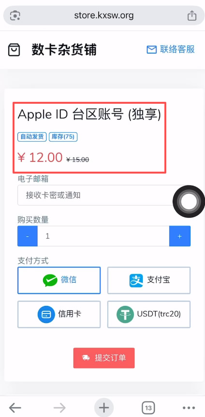 5、可以看到一個臺區(qū)的賬號需要12塊錢,你在這里去購買一個。