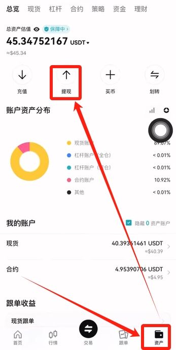 我們打開Bitget交易所,點擊右下角的【資產(chǎn)】,點擊【提現(xiàn)】。