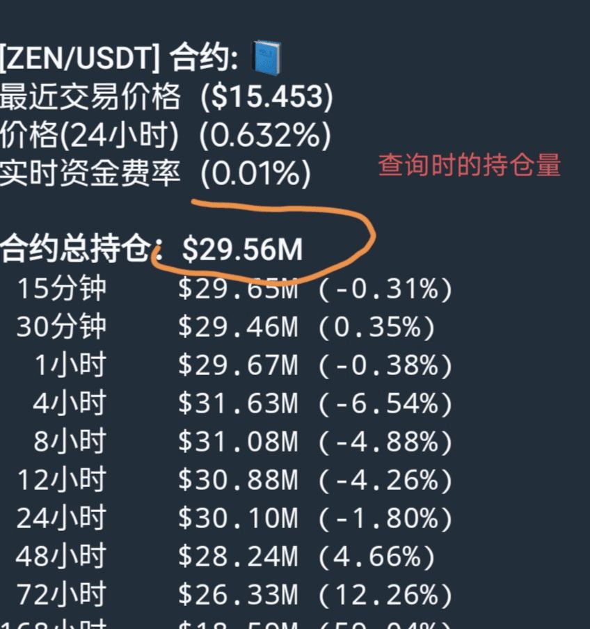 持倉(cāng)量反應(yīng)該幣種的資金熱度。下圖就是查詢(xún)時(shí)的持倉(cāng)量(單位u),數(shù)據(jù)會(huì)實(shí)時(shí)變化,以最新為準(zhǔn)。