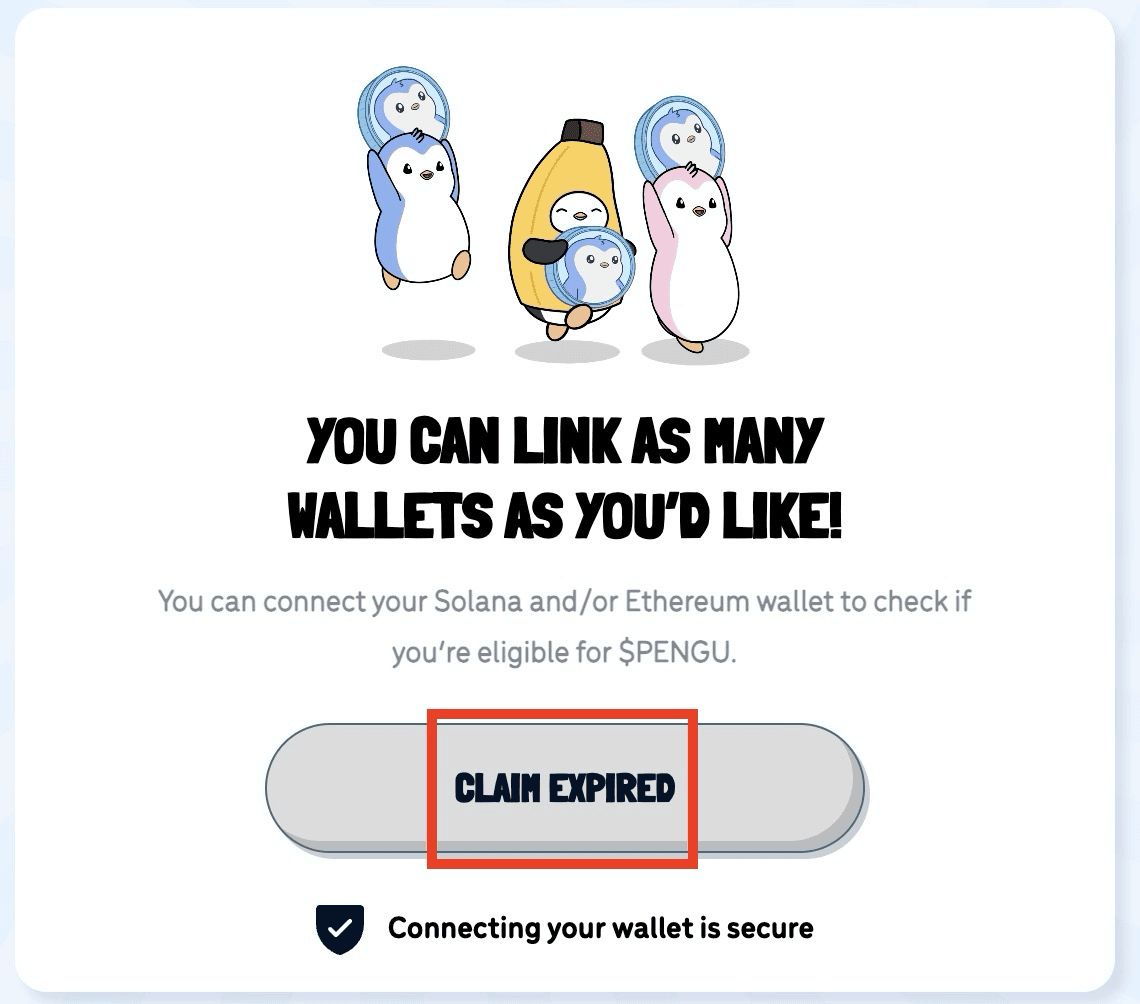 沒(méi)領(lǐng)取的 PENGU 幣空投在 88 天后就會(huì)直接銷毀