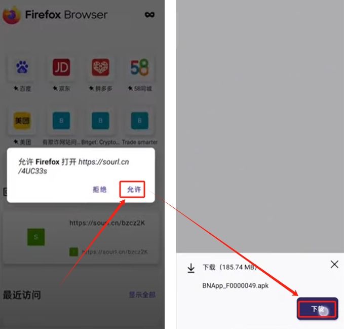 3.點(diǎn)擊“允許”,再點(diǎn)擊“下載”這個(gè)APK安裝包就可以了。