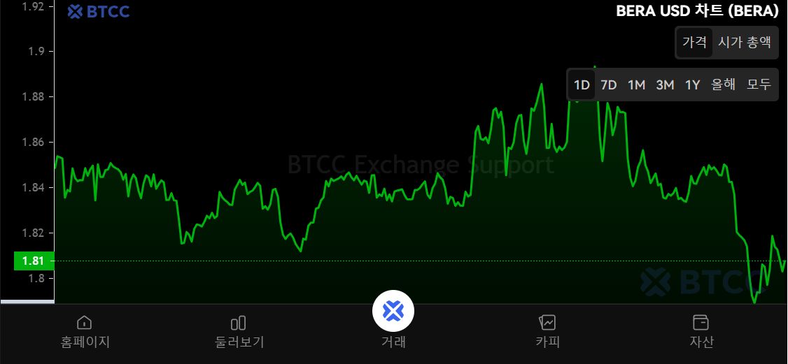 截至當(dāng)?shù)貢r間8月27日下午5:22,BERA幣在BTCC交易所的交易價格為2.54美元,較前24小時上漲3.9%。過去24小時內(nèi),BERA幣的價格從2.39美元的低點飆升至2.90美元的高點。目前,BERA幣在CoinMarketCap上的排名為第159位,市值為313,690,146美元。