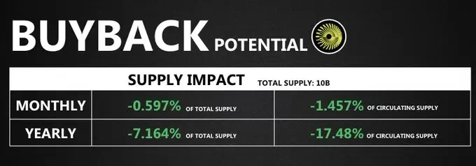 截至目前,他們已回購了3%的代幣供應(yīng)量。照此速度,一年內(nèi)他們將能夠回購近20%的流通供應(yīng)量。