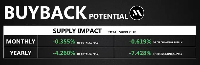 每月將有50%的協(xié)議收入撥付給DAO,專門用于MTPLX代幣回購。